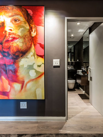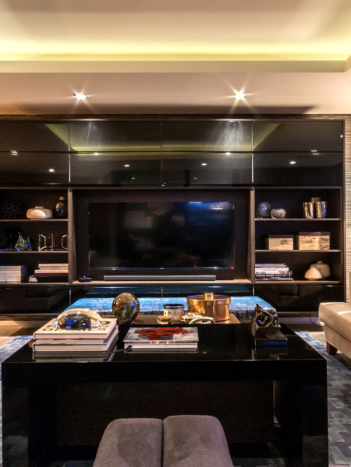 This project began with a full-scale renovation, stripping the apartment down to its core and rebuilding with a vision of dark, dramatic elegance. Every surface was renewed - from the floors and ceilings to custom wall finishes and bespoke joinery - creating a dynamic interior that both complements the city’s energy and offers intimate comfort.