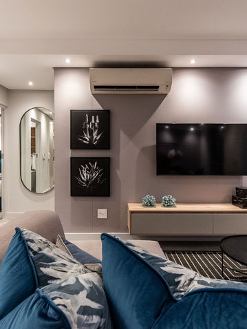 Nestled in vibrant Sea Point, this compact apartment was given a new lease on life for our Swiss client, who sought a stylish, welcoming retreat to enjoy Cape Town’s renowned climate. Although the apartment was in a new building, it lacked the personal touches and functional enhancements needed for true comfort and leisure.