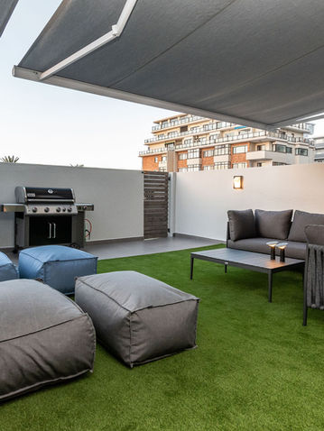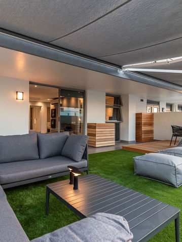 Recognizing the potential of the expansive outdoor terrace, we designed this area to become the heart of the home. By segmenting the terrace into distinct zones for lounging, dining, and entertaining, we created a versatile space that invites relaxation and socializing. The installation of automated electric blinds ensures privacy and intimacy, even on the ground floor, allowing for effortless indoor-outdoor living year-round.